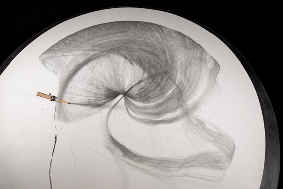 The works selected for this exhibition look at the implication of the artist’s hand – its presence or absence – and questions of materials and pictorial space. They vary from hand-drawn graphite, coloured pencil and ink on paper, to collaborative wall and floor drawings, works made using the power of the sun, and works that extend beyond two dimensions.